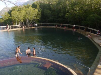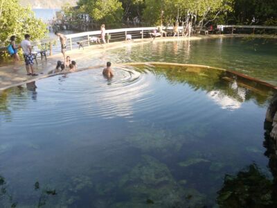 エントランスフィーは大人一人200ペソ(約420円)です。7~8割が外国からの観光客でした。海辺にあり塩が混じった温泉です。